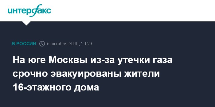 На юге Москвы из-за утечки газа срочно эвакуированы жители 16-этажного дома