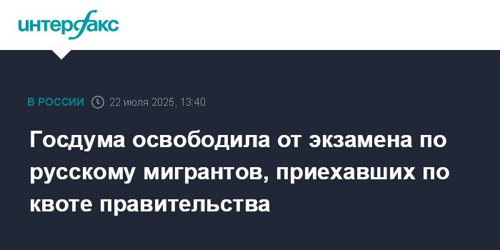 Госдума освободила от экзамена по русскому мигрантов, приехавших по квоте правительства