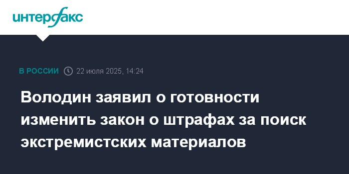 Володин заявил о готовности изменить закон о штрафах за поиск экстремистских материалов