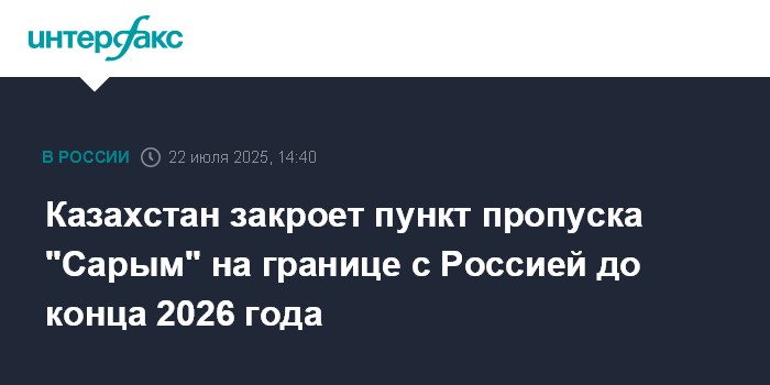Москва. 22 июля. INTERFAX.RU - Казахстан закроет пункт пропуска "Сарым" на границе с Россией на реконструкцию до конца 2026 года, пункт будет закрыт для легкового и общественного транспорта, проезд грузового транспорта ограничат до 200-250 машин в сутки, сообщила пресс-служба нацкомпании "Казавтожол" ("Автомобильные дороги Казахстана").
