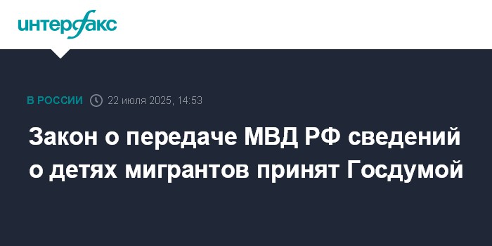 Закон о передаче МВД РФ сведений о детях мигрантов принят Госдумой