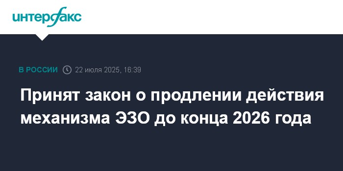 Принят закон о продлении действия механизма ЭЗО до конца 2026 года