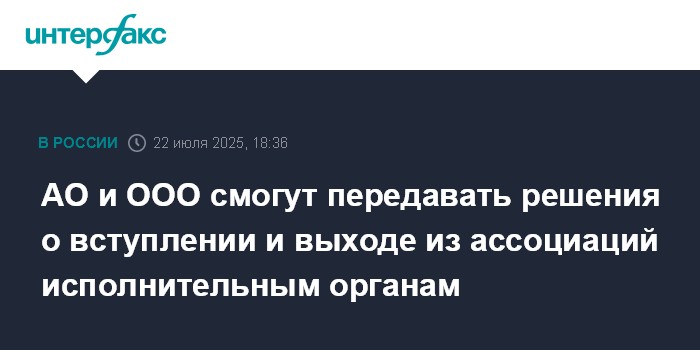 АО и ООО смогут передавать решения о вступлении и выходе из ассоциаций исполнительным органам