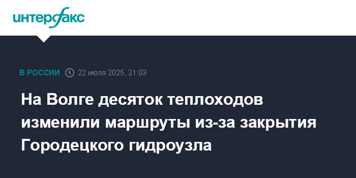 Ранее 22 июля круизный оператор "Водоходъ" изменил расписание теплоходов, маршруты которых 22-23 июля проходили через шлюзы Городецкого гидроузла. 22 июля три теплохода не смогли пройти шлюзование и вернулись к причалам Нижнего Новгорода и Городца. Участникам этих круизов будут предлагаться альтернативные маршруты и варианты пересадок на другие теплоходы компании.