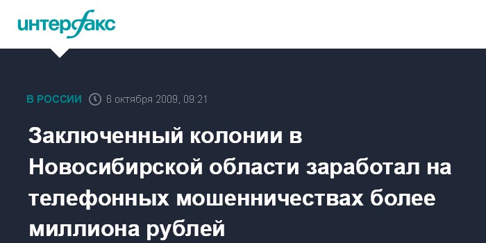 Как сообщил во вторник агентству "Интерфакс-Сибирь" референт пресс-службы ГУВД по Кемеровской области Владимир Сергеев, заключенный одной из колоний в Новосибирской области звонил жителям Кузбасса, в основном-пенсионерам, и говорил, что их внук или сын попал в милицию.