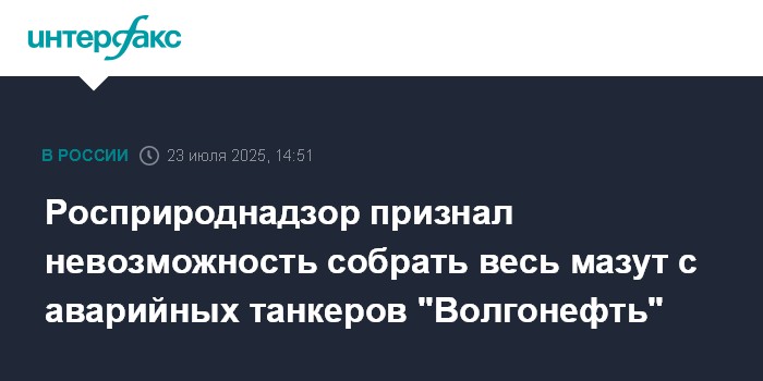 Москва. 23 июля. INTERFAX.RU - Часть нефтепродуктов, попавших в Черное море в результате крушения танкеров "Волгонефть-212" и "Волгонефть-239", убрать невозможно, считают в Росприроднадзоре.