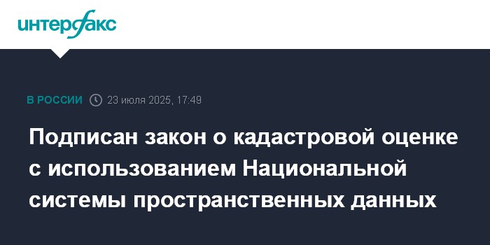 Москва. 23 июля. INTERFAX.RU - Президент России Владимир Путин подписал закон, согласно которому государственная кадастровая оценка в регионах будет проводиться с использованием Национальной системы пространственных данных (НСПД).
