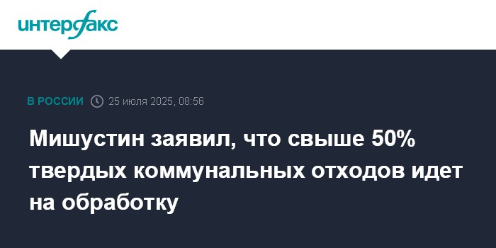 Москва. 25 июля. INTERFAX.RU - Россия формирует экономику замкнутого цикла, уже больше половины твёрдых коммунальных отходов идёт на обработку, сообщил премьер-министр РФ Михаил Мишустин.