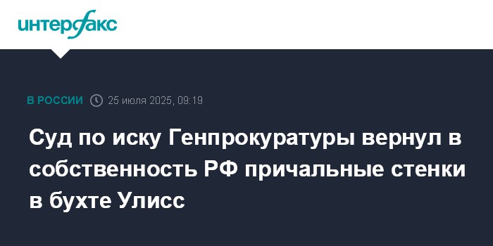 Суд по иску Генпрокуратуры вернул в собственность РФ причальные стенки в бухте Улисс