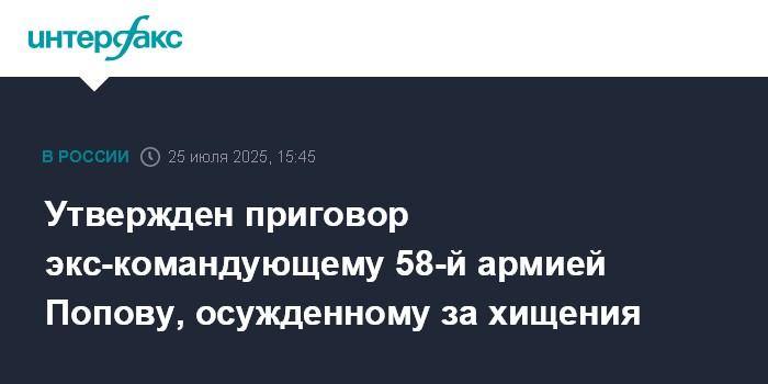 Утвержден приговор экс-командующему 58-й армией Попову, осужденному за хищения