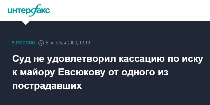 Суд не удовлетворил кассацию по иску к майору Евсюкову от одного из пострадавших