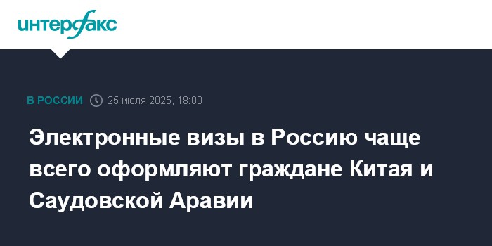 Электронные визы в Россию чаще всего оформляют граждане Китая и Саудовской Аравии