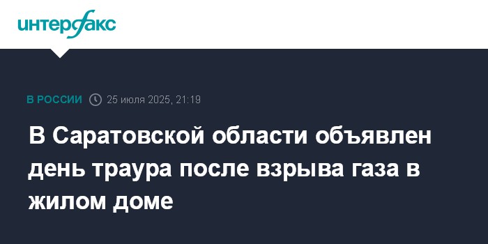 Москва. 25 июля. INTERFAX.RU - День траура объявлен в субботу в Саратовской области в связи с гибелью людей в многоэтажке в Саратове, сообщил губернатор Роман Бусаргин в своем телеграм-канале.