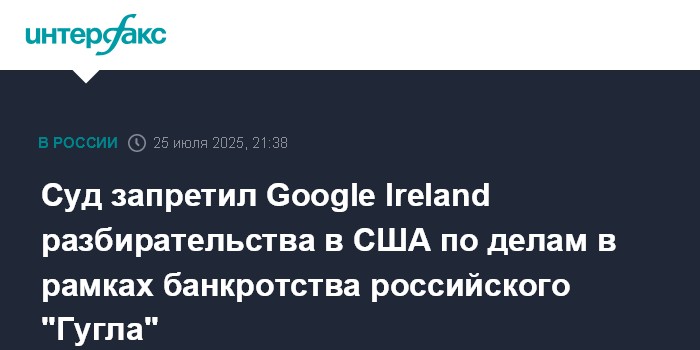 Суд запретил Google Ireland разбирательства в США по делам в рамках банкротства российского "Гугла"