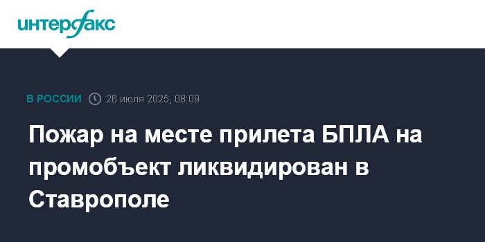 Москва. 26 июля. INTERFAX.RU - Отражена атака беспилотных летательных аппаратов (БПЛА) на промышленные объекты в Ставрополе, сообщил губернатор Ставропольского края Владимир Владимиров.