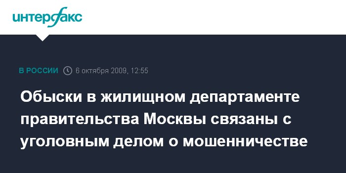 Обыски в жилищном департаменте правительства Москвы связаны с уголовным делом о мошенничестве