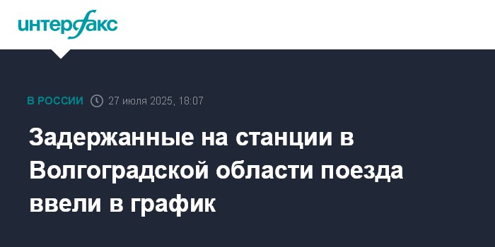 Москва. 27 июля. INTERFAX.RU - Пассажирские поезда, движение которых было задержано из-за падения обломков беспилотника на станцию Жутова в Волгоградской области, введены в график, сообщает телеграм-канал Приволжской железной дороги.