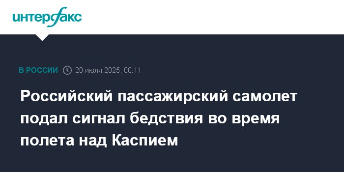 Москва. 28 июля. INTERFAX.RU - Российский пассажирский лайнер подал сигнал бедствия над Каспийским морем, сообщили "Интерфаксу" в авиационных службах.