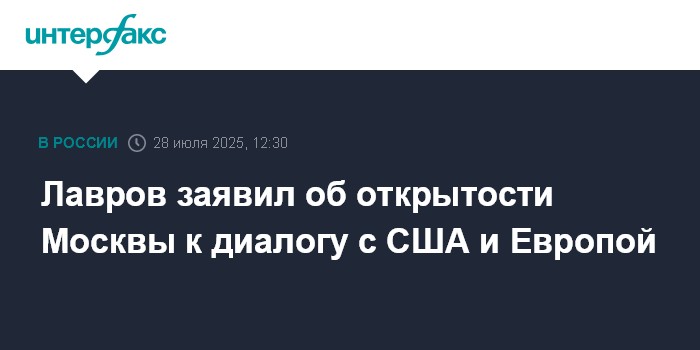 Москва. 28 июля. INTERFAX.RU - Москва по-прежнему остается открытой к диалогу с США и любой европейской страной, заявил в понедельник глава МИД РФ Сергей Лавров.