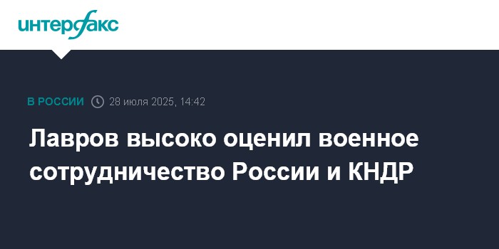 Москва. 28 июля. INTERFAX.RU - КНДР - главный союзник РФ на востоке, страны имеют долгие годы "братских боевых связей", заявил министр иностранных дел России Сергей Лавров.