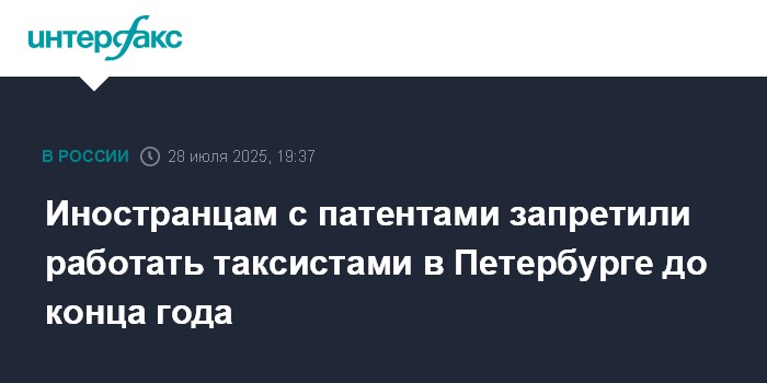 Москва. 28 июля. INTERFAX.RU - Работающим по патентам иностранцам будет запрещено работать таксистами в Санкт-Петербурге до конца 2025 года, сообщает пресс-служба городской администрации в понедельник.
