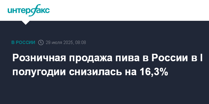 Розничная продажа пива в России в I полугодии снизилась на 16,3%