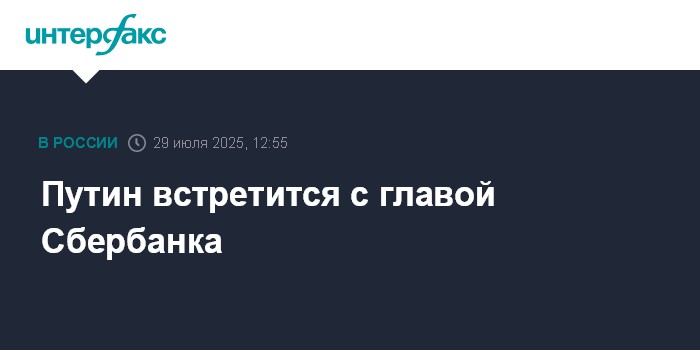Москва. 29 июля. INTERFAX.RU - Президент РФ Владимир Путин во вторник встретится с главой Сбербанка Германом Грефом, сообщил пресс-секретарь президента Дмитрий Песков.