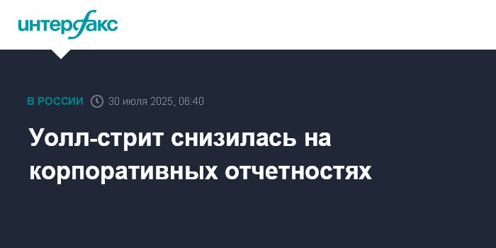 Москва. 30 июля. INTERFAX.RU - Американские фондовые индексы завершили в минусе торги во вторник, инвесторы оценивали корпоративные отчетности и ждали итогов заседания Федеральной резервной системы.