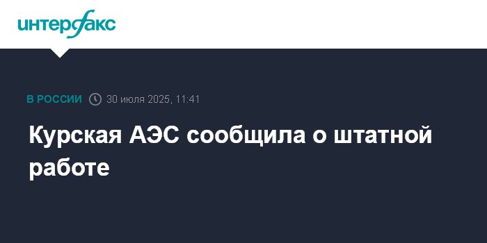 Москва. 30 июля. INTERFAX.RU - Курская АЭС работает штатно, сообщило управление коммуникаций атомной станции.