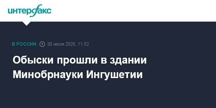 "Силовики провели следственные действия в Минобразования Ингушетии, на период проведения обысков вход в здание был заблокирован", - сказал собеседник агентства.