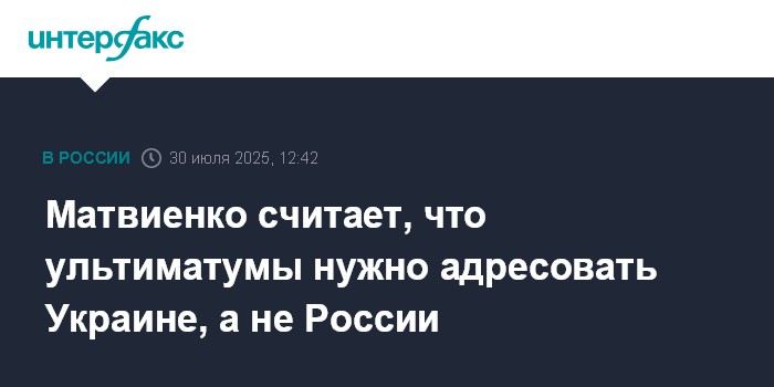 "Ультиматумы, как это называют журналисты, это далеко не эффективные способы разрешения конфликтов, серьезных противоречий. Если уж адресовать, как вы говорите, ультиматумы, то их надо адресовать украинской стороне, потому что именно они срывают мирные переговоры", - сказала Матвиенко журналистам в Женеве в среду.