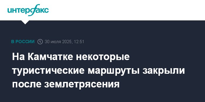 Москва. 30 июля. INTERFAX.RU - Губернатор Камчатки Владимир Солодов после землетрясения поручил Министерству туризма края проверить безопасность туристических маршрутов, часть маршрутов уже закрыта, сообщает пресс-служба правительства региона.