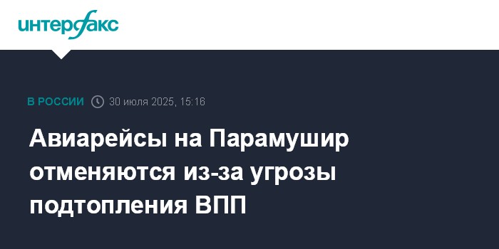 Москва. 30 июля. INTERFAX.RU - В Сахалинской области отменены авиарейсы на остров Парамушир из-за риска затопления взлетно-посадочной полосы в Северо-Курильске, сообщил представитель Росавиации Артем Кореняко.