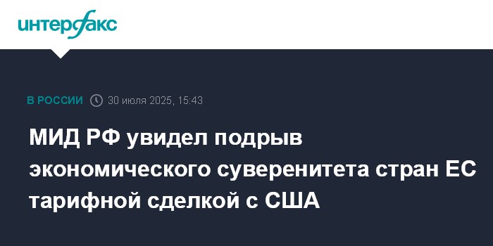 МИД РФ увидел подрыв экономического суверенитета стран ЕС тарифной сделкой с США