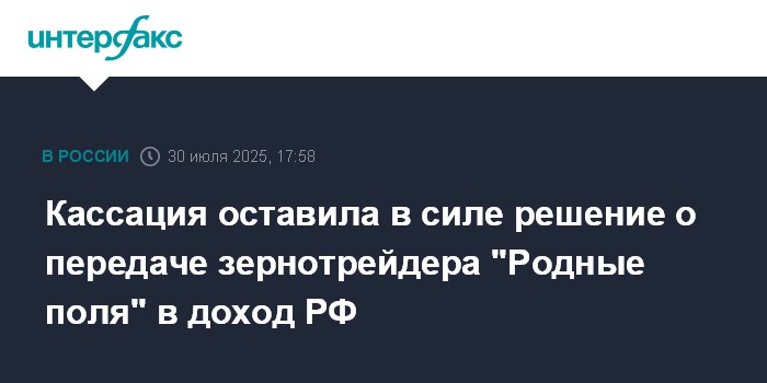Кассация оставила в силе решение о передаче зернотрейдера "Родные поля" в доход РФ