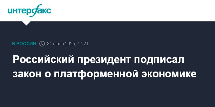 Москва. 31 июля. INTERFAX.RU - Президент РФ Владимир Путин подписал федеральный закон о регулировании платформенной экономики. Документ размещен на портале официального опубликования правовых актов.