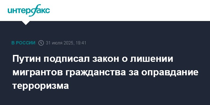 Путин подписал закон о лишении мигрантов гражданства за оправдание терроризма