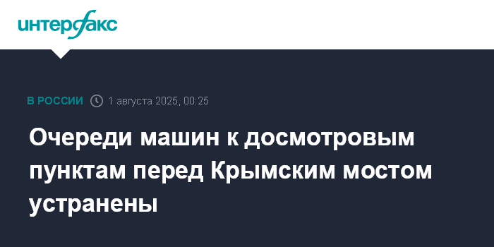 Москва. 1 августа. INTERFAX.RU - Очереди к досмотровым пунктам при въезде на Крымский мост полностью ликвидированы, сообщили в пятницу в инфоцентре, освещающем ситуацию на автомобильных подходах к мосту.