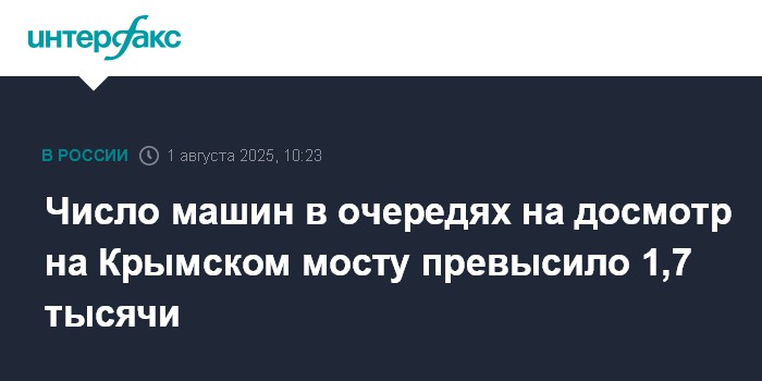 Москва. 1 августа. INTERFAX.RU - Проезда через досмотровые пункты на Крымском мосту в пятницу утром ожидают 1704 автомобиля, сообщили в инфоцентре, освещающем ситуацию на автомобильных подходах к мосту.