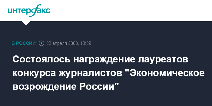 Конкурс журналистов "Экономическое возрождение России" проводится Торгово-промышленной палатой России и Союзом журналистов России с 1993 года.