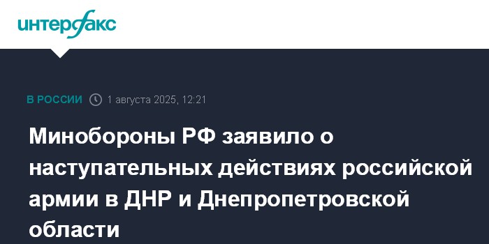 Минобороны РФ заявило о наступательных действиях российской армии в ДНР и Днепропетровской области