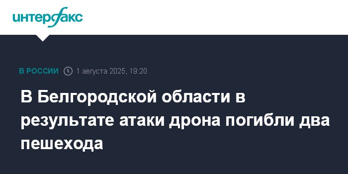Москва. 1 августа. INTERFAX.RU - В Валуйском округе Белгородской области в результате атаки дрона погибли двое мужчин, сообщил губернатор региона Вячеслав Гладков.