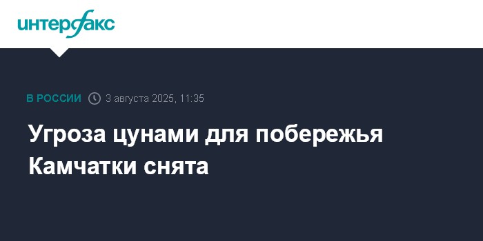 Москва. 3 августа. INTERFAX.RU - Угроза цунами для берегов Камчатки отменена, сообщила пресс-служба Главного управления МЧС РФ по региону.