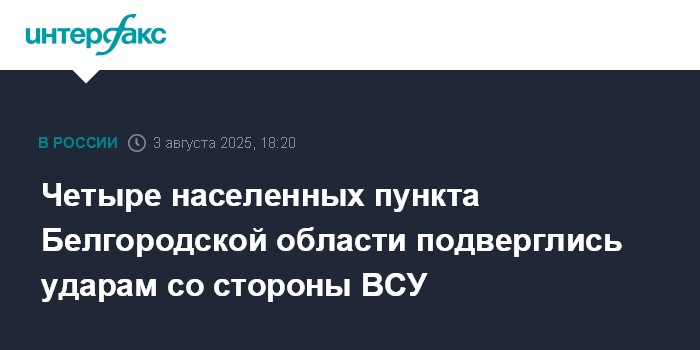 Москва. 3 августа. INTERFAX.RU - Губернатор Белгородской области Вячеслав Гладков сообщил об ударах ВСУ по четырем населенным пунктам в регионе.