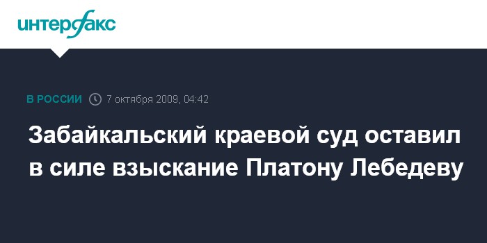 Дело о взыскании П.Лебедеву рассматривалось в рамках гражданского судопроизводства. Адвокаты обжаловали наложенное взыскание сначала в Ингодинском районном суде, а затем - в Забайкальском краевом.