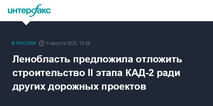 Москва. 5 августа. INTERFAX.RU - Ленинградская область обратилась в правительство РФ с предложением отложить реализацию II этапа второй кольцевой автодороги (КАД-2) вокруг Петербурга, сообщил губернатор Ленобласти Александр Дрозденко в своем телеграм-канале.
