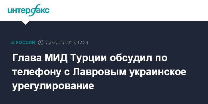 Москва. 7 августа. INTERFAX.RU - Глава МИД Турции Хакан Фидан провел в четверг телефонный разговор со своим российским коллегой Сергеем Лавровым, сообщают турецкие СМИ со ссылкой на источники в турецком внешнеполитическом ведомстве.