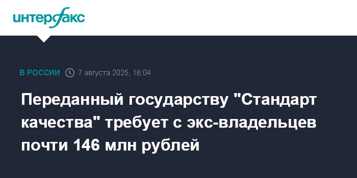 Переданный государству "Стандарт качества" требует с экс-владельцев почти 146 млн рублей