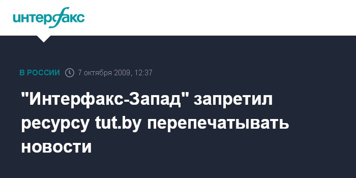 "Интерфакс-Запад" запретил ресурсу tut.by перепечатывать новости