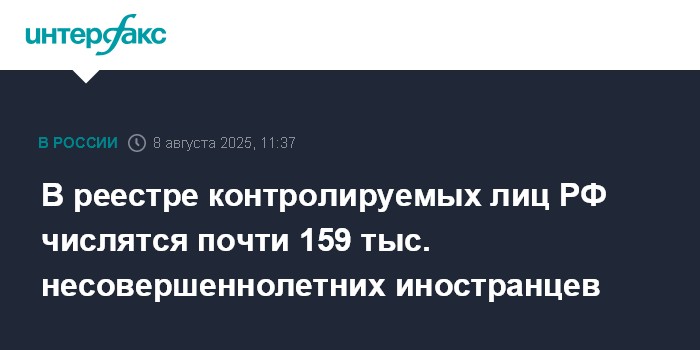 В реестре контролируемых лиц РФ числятся почти 159 тыс. несовершеннолетних иностранцев